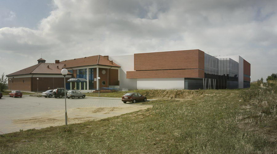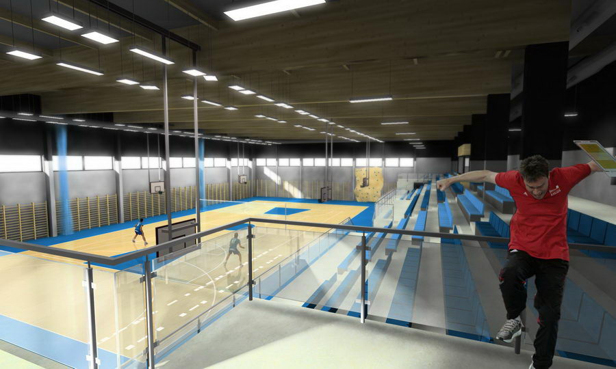 Przebudowa szkoły przy ul. Mściszewskiej 10 w Murowanej Goślinie, rozbudowa o halę widowiskowo-sportową z widownią na 500 osób, zespółem fitness, blokiem szkolno-dydaktycznym i bazą noclegową.